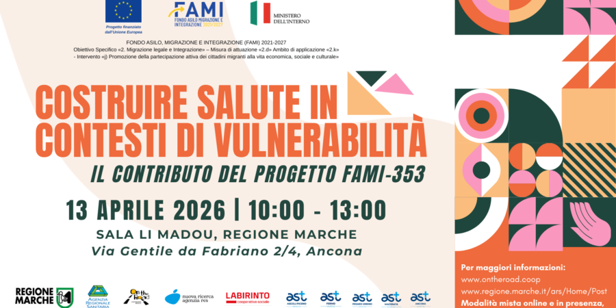 Costruire salute in contesti di vulnerabilità: il contributo del progetto FAMI-353 | 13 aprile 2026, Sala Li Madou – Regione Marche e online