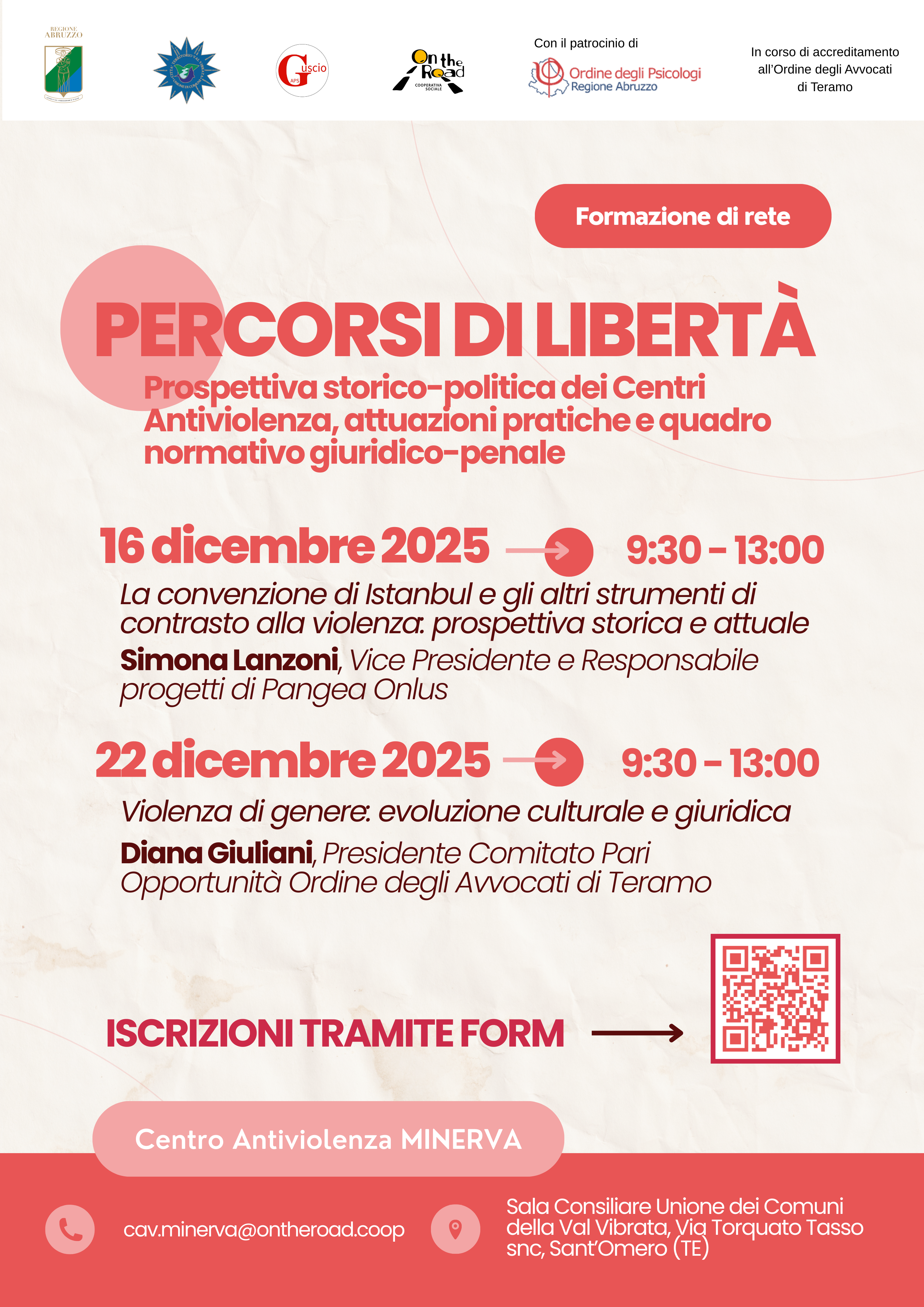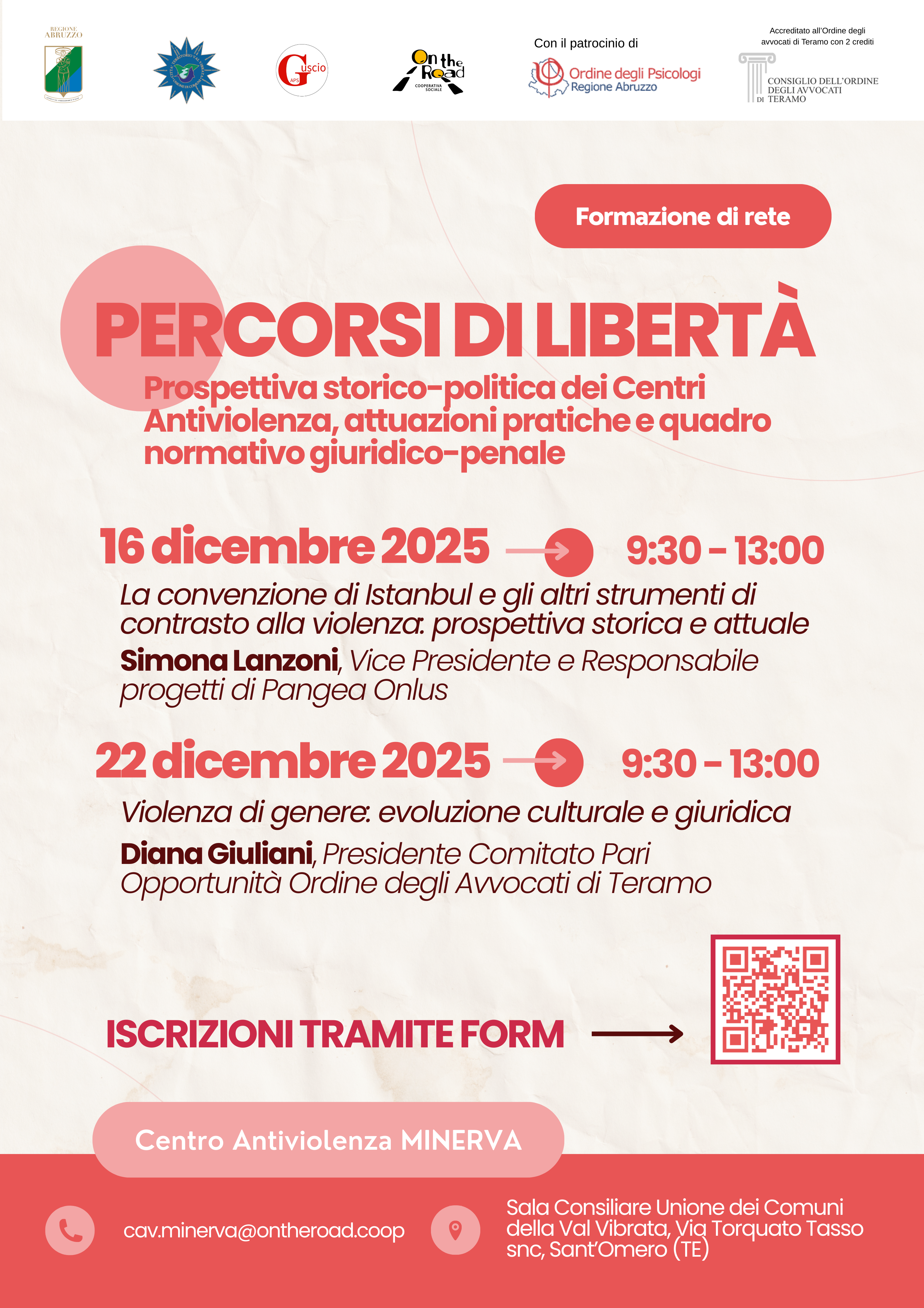 FORMAZIONE DI RETE | Percorsi di liberta: prospettiva storico-politica dei Centri Antiviolenza, attuazioni pratiche e quadro normativo giuridico-penale. 16 e 22 dicembre 2025, Sant’Omero (TE)